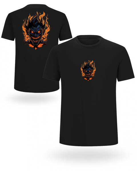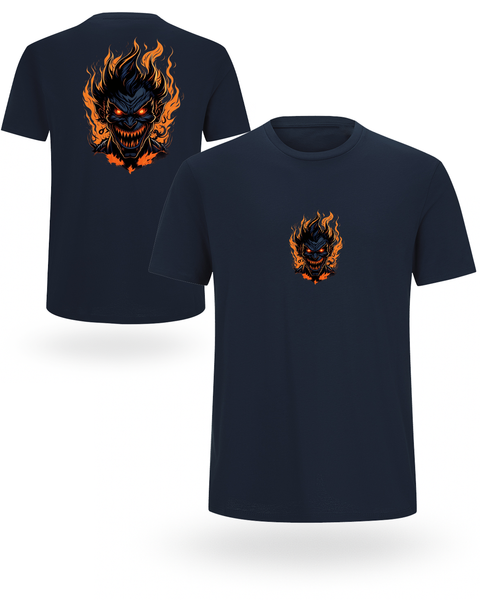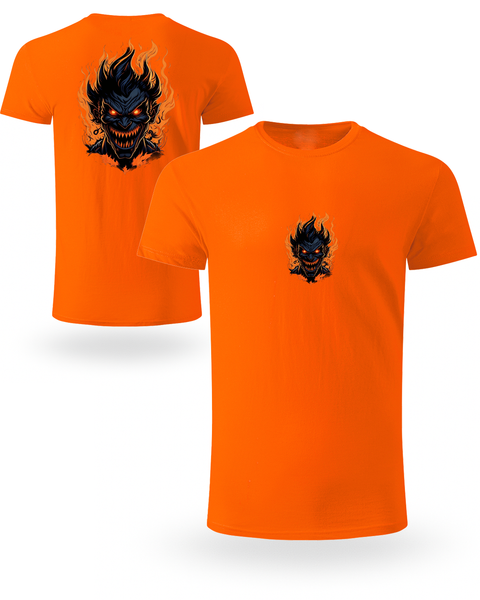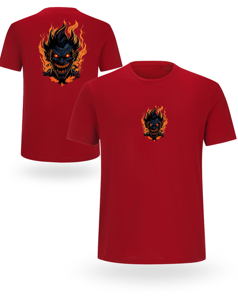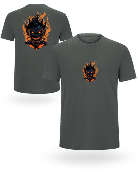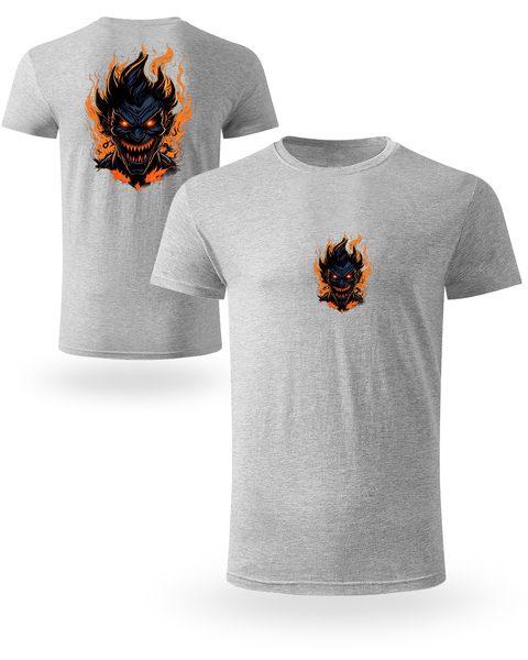 Pokaži svoju tamnu stranu! 👹🔥 Ova 100% organska pamučna 🌿 uniseks majica dolazi sa jedinstvenim printom – mali motiv naprijed i veliki plameni demon pozadi.