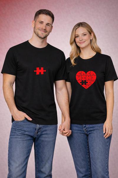 Dva dijela koji se savršeno uklapaju. Puzzle srce set majica za parove simbolizuje ljubav, povezanost i potpunost.