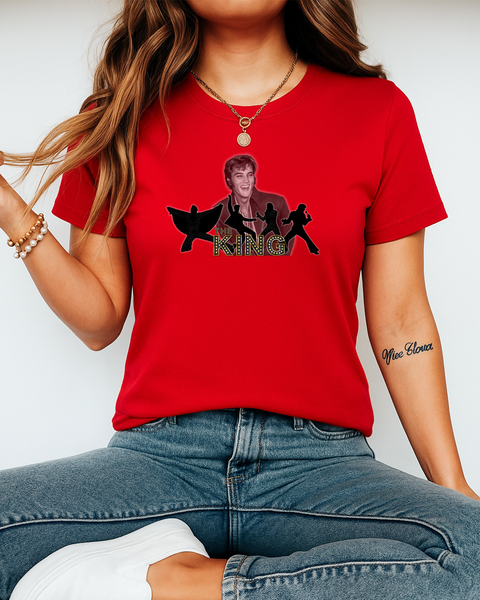 ✨ Ova majica inspirisana kraljem Rock’n Roll-a Elvis Presley-em donosi poseban šarm i muzičku energiju u tvoj stil. Natpis “The King” i prepoznatljiva silueta čine je savršenim izborom za ljubitelje muzike i vintage mode. Izrađena od 100% organskog pamuka, prijatna je na koži i omogućava da ostaneš svjež i tokom najtoplijih dana. Kada je jednom obučeš, osjetićeš udobnost i slobodu koju druge majice ne mogu da pruže.