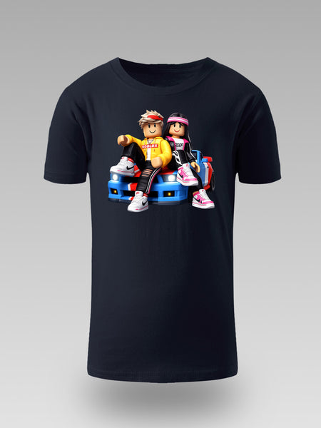 🎮😎 Najkul duo iz gaming svijeta sada u dječijem stilu! Ova Roblox dječija majica sa likovima na sportskom autu donosi energiju i zabavu 🚗✨